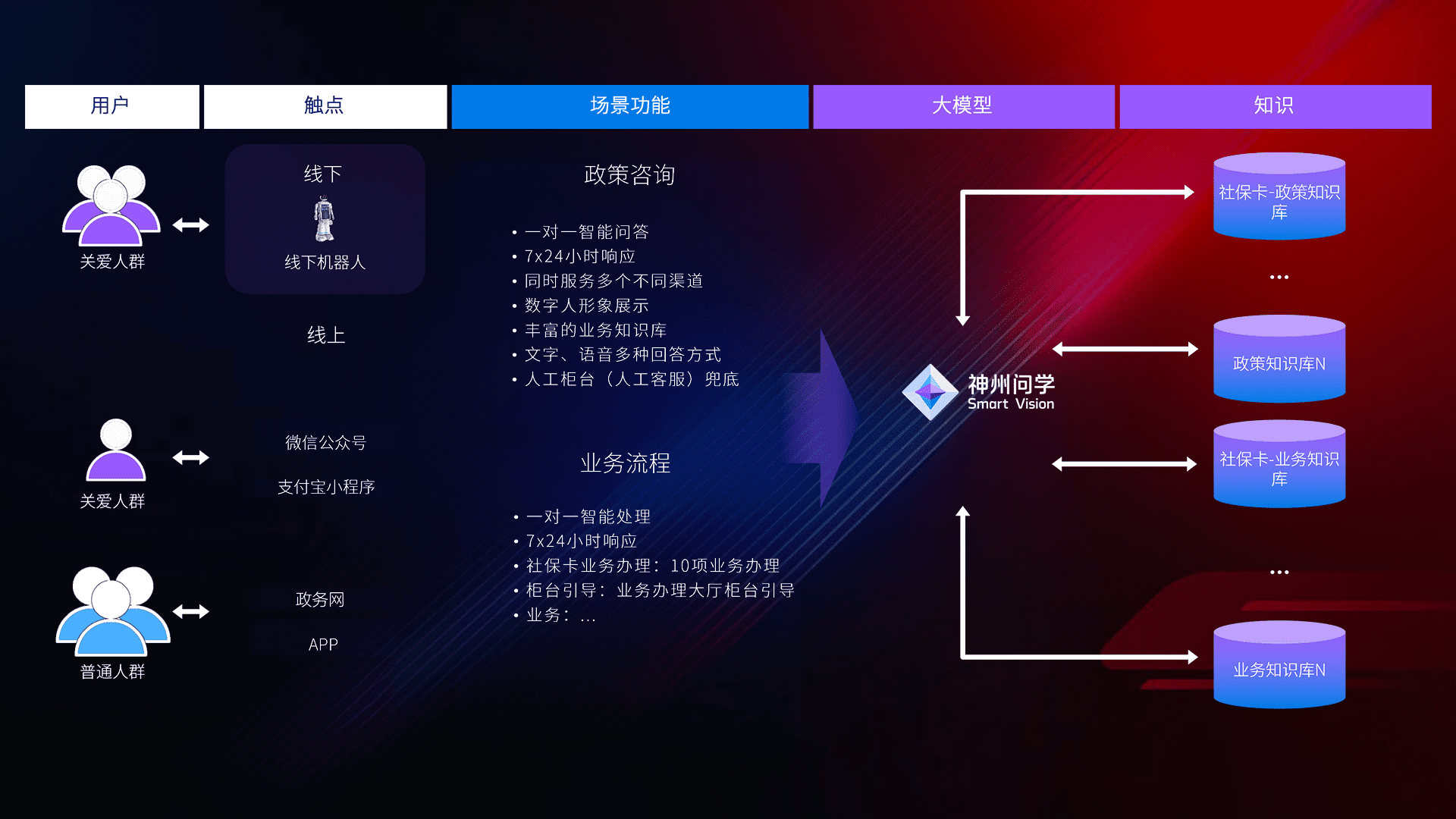 在服务大厅部署客服机器人,,,,在线上应用和小程序配置客服数字人,,,,724小时为群众解答常规问题,,,客服机器人无法处理的,,,,转现场人工处理。。。